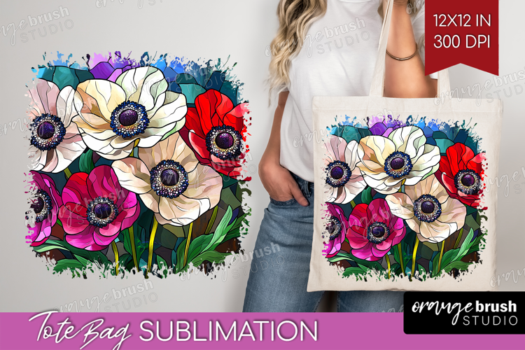 Stained Glass Tote Bag - Flowers Tote Bag PNG Sublimation example image 1