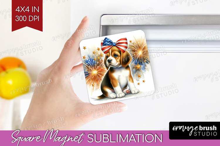 Beagle Dog Magnet Sublimation Patriotic Dog Square Magnet example image 1