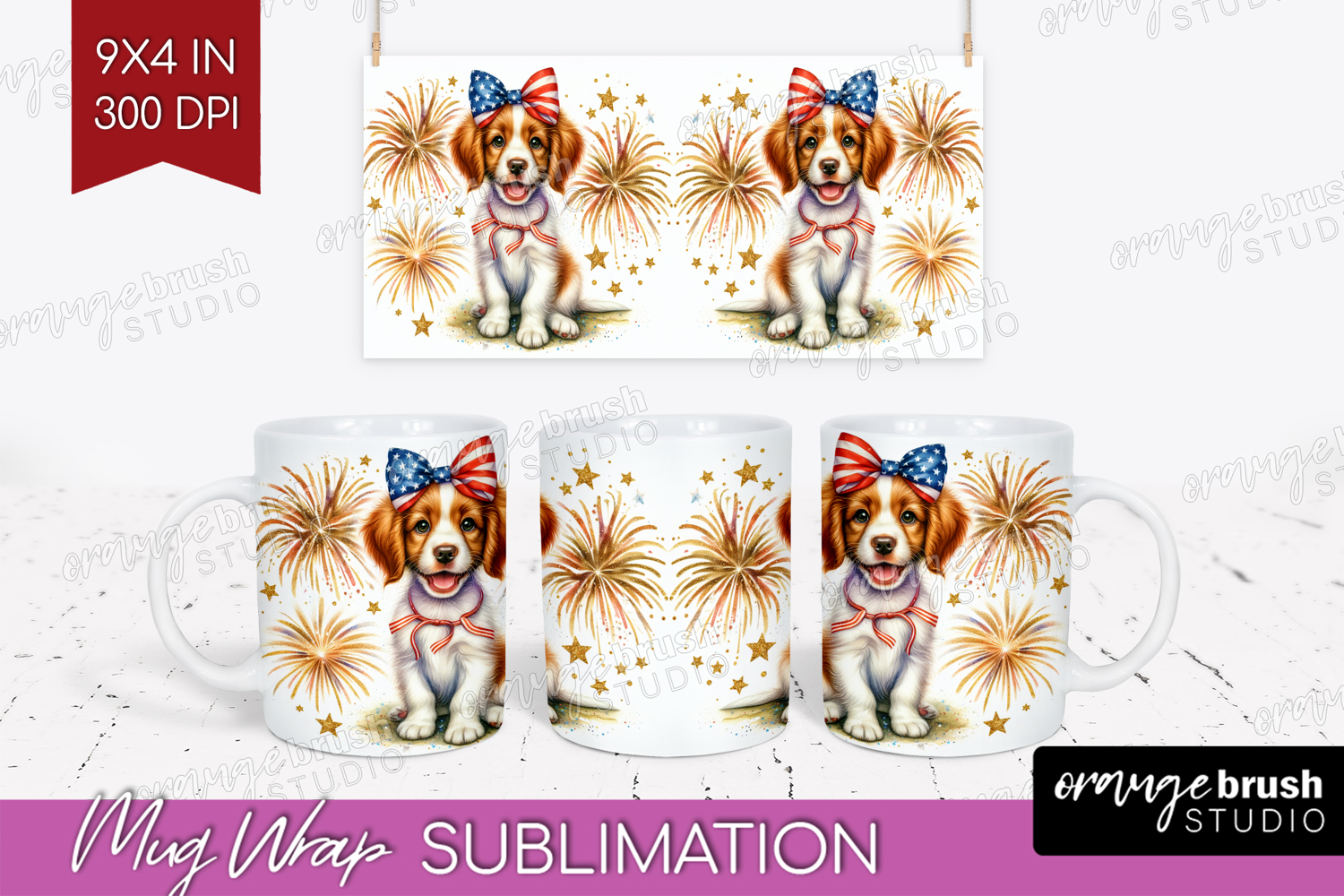 Brittany Spaniel Dog Mug Wrap Patriotic Dog Mug PNG example image 1