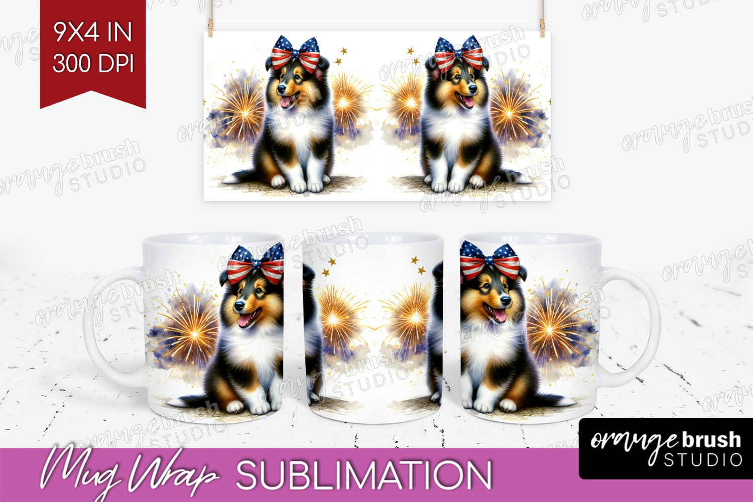 Collie Dog Mug Wrap Patriotic Dog Mug PNG Sublimation example image 1