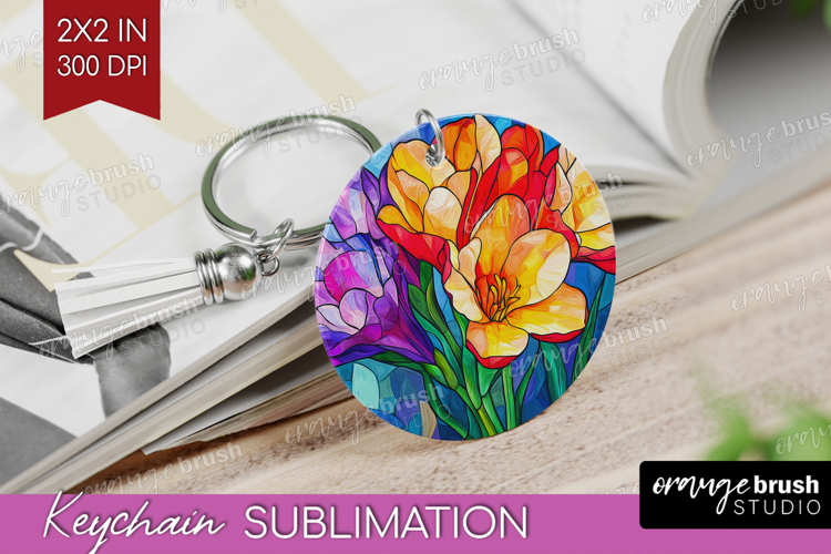Stained Glass Keychain PNG - Flowers Keychain Sublimation