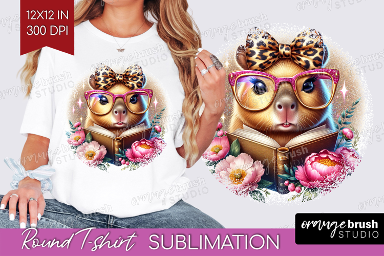 Capybara Reading Round Tshirt Background Book Lover PNG example image 1