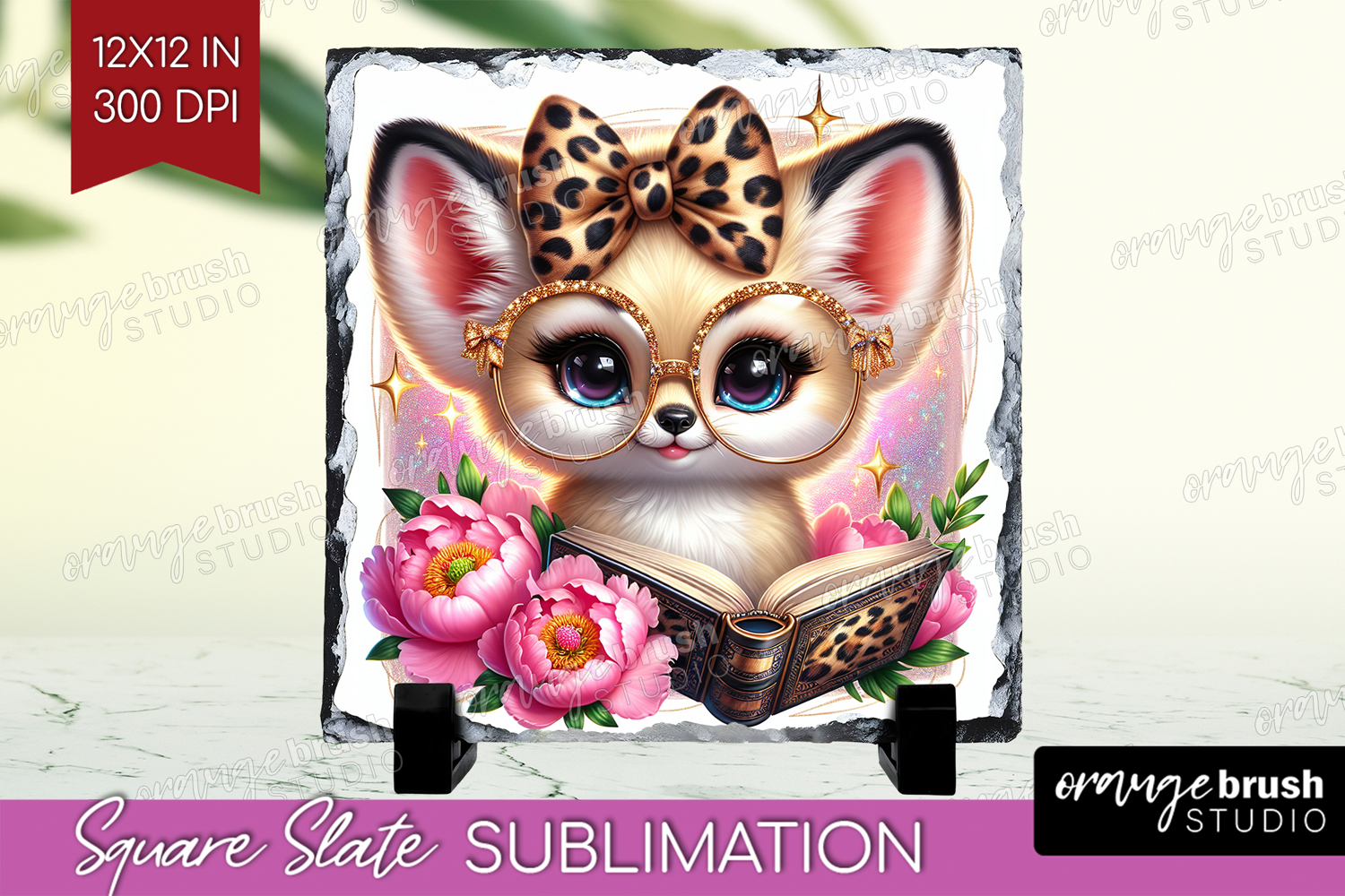 Fennec Fox Reading Slate PNG Book Lover Square Slate