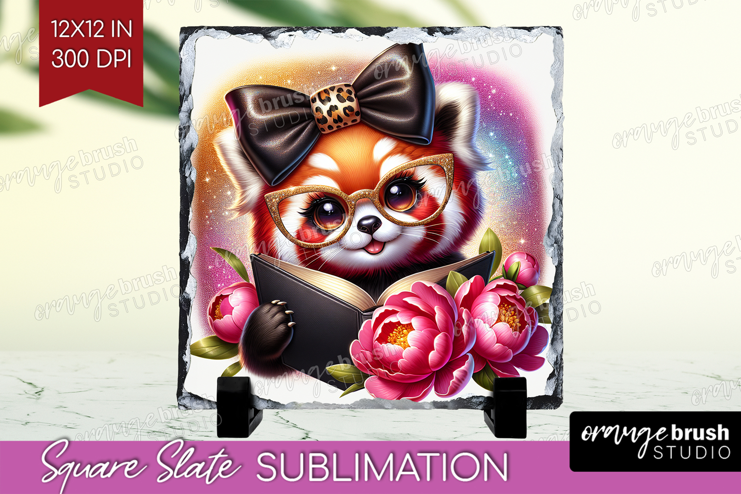 Red Panda Reading Animals Slate Sublimation Book Reading Slate Sublimation Book Lover Slate Sublimation Reading Animals Square Slate Book Reading Square Slate Book Lover Square Slate Reading Animals Slate Png Book Reading Slate Png Book Lover Slate Png