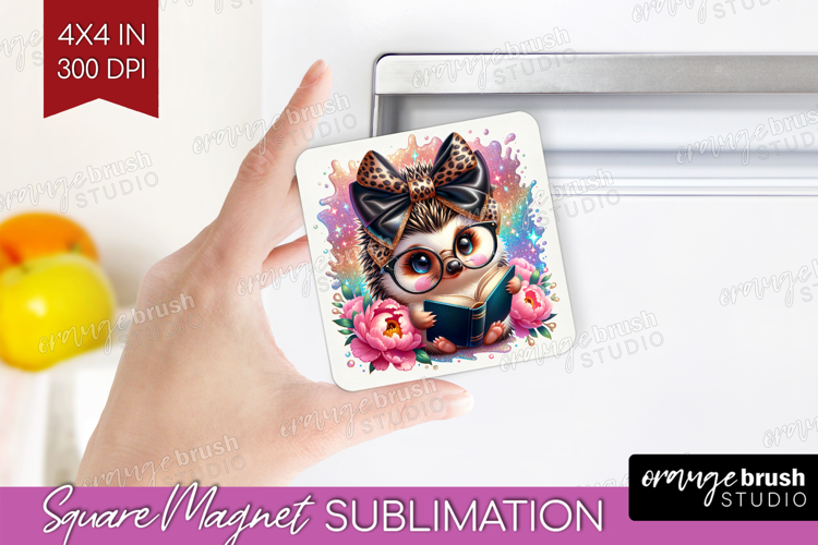 Hedgehog Reading Magnet Sublimation Book Lover Square Magnet example image 1