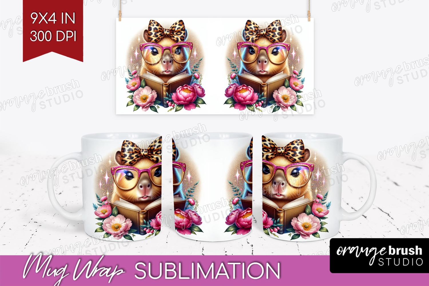 Capybara Reading Mug Wrap Book Lover Mug PNG Sublimation