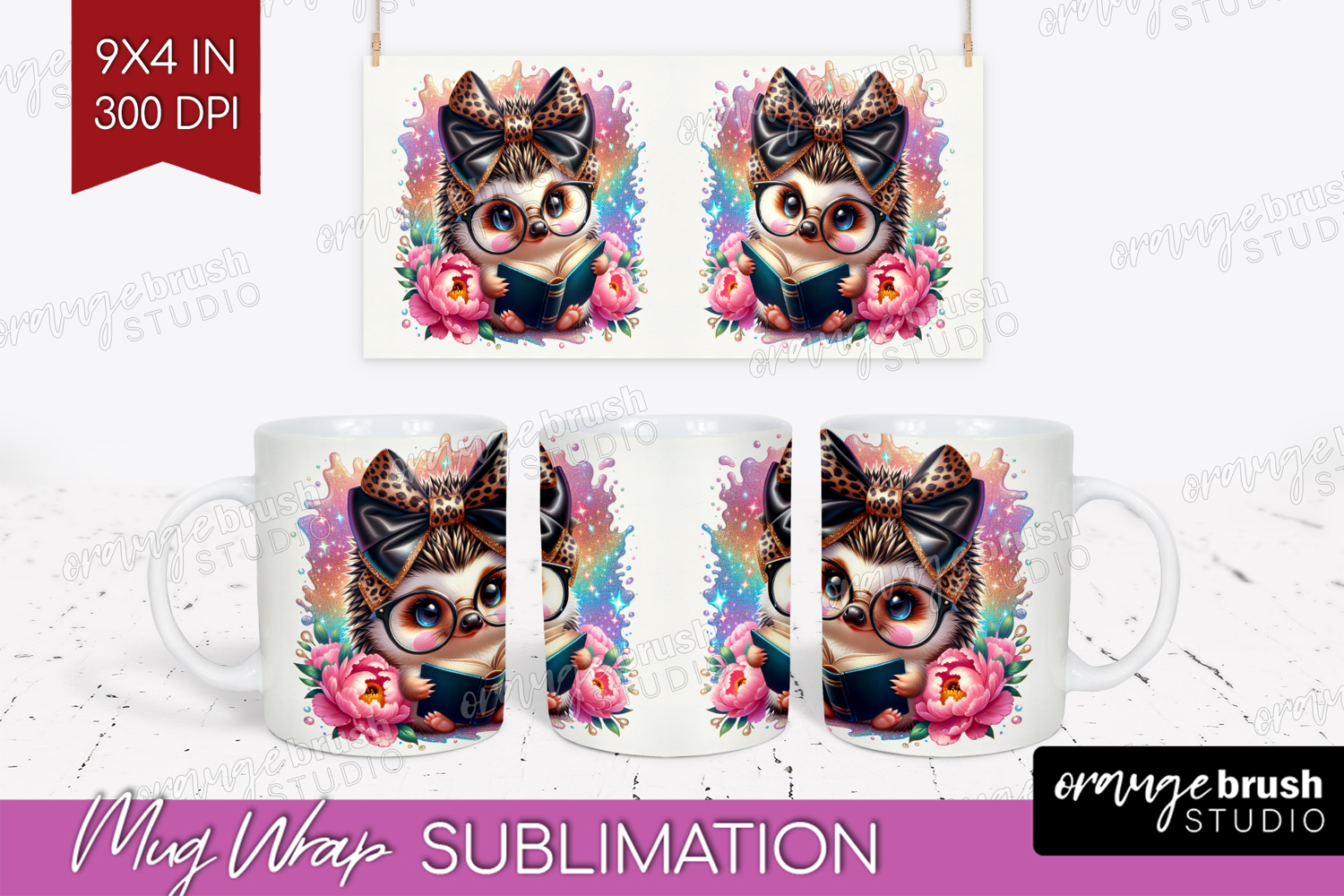Hedgehog Reading Mug Wrap Book Lover Mug PNG Sublimation