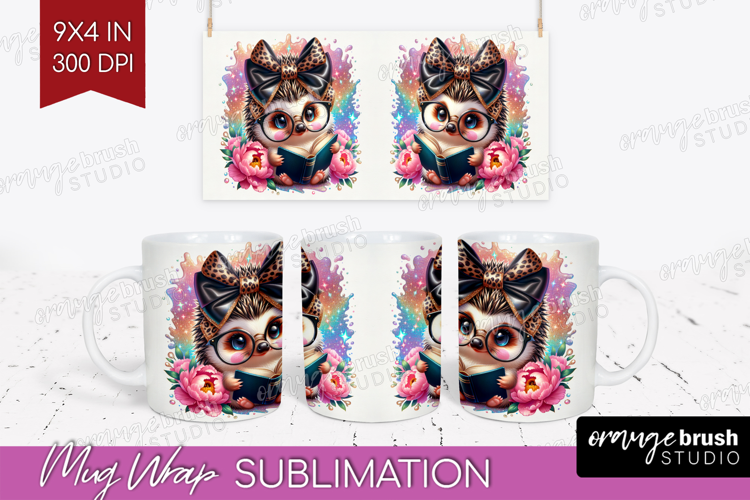 Hedgehog Reading Mug Wrap Book Lover Mug PNG Sublimation example image 1