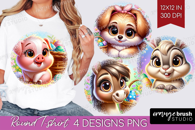Easter Animals Round Tshirt Background - Cute Easter PNG example image 1