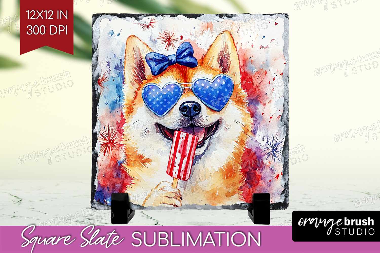 Akita Dog Slate PNG 4th Of July Square Slate Sublimation