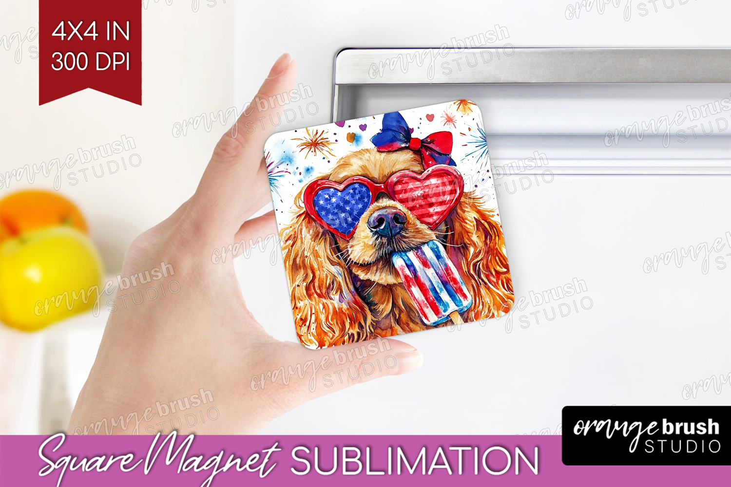 Cocker Spaniel Dog Magnet Sublimation 4th Of July Square PNG