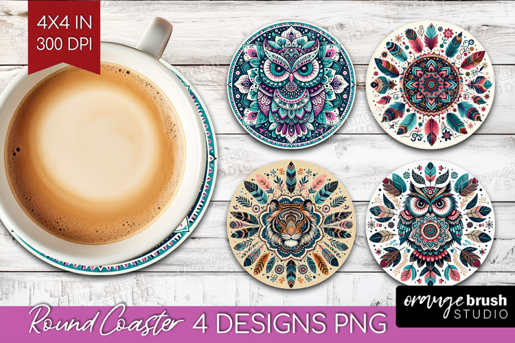 Similar Design Products to Boho Animal Round Coaster - Mandala Coaster PNG Sublimation