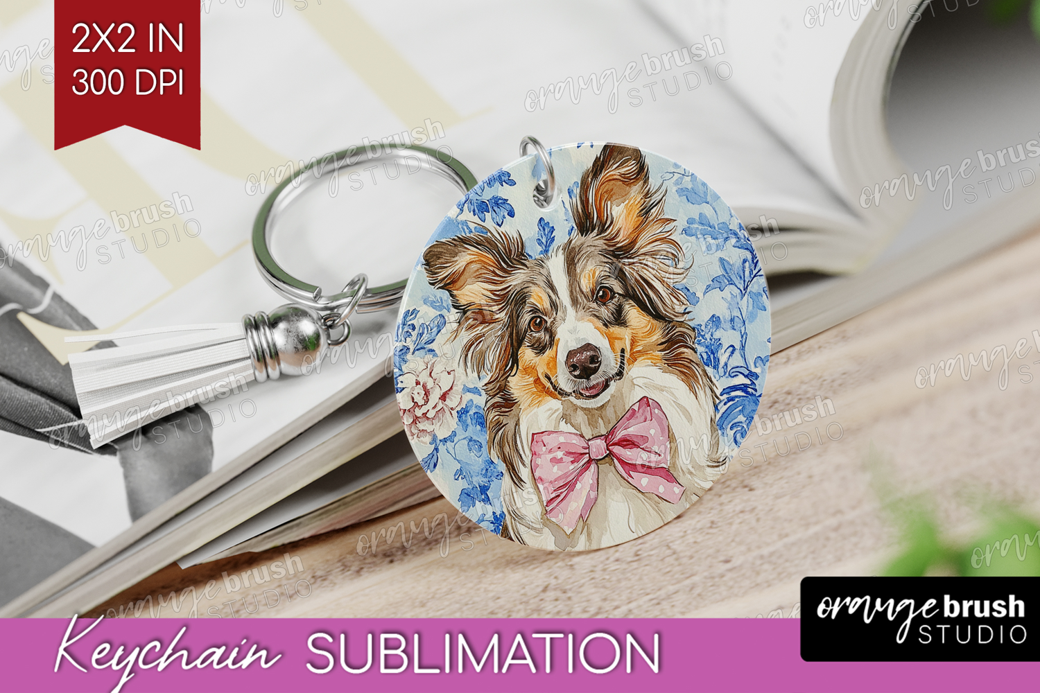 Collie Dog Keychain PNG Blue Toile Keychain Sublimation