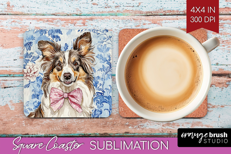 Collie Dog Coaster Sublimation Dog Square Coaster Dog Coaster Png Blue Toile Square Coaster Chinoiserie Square Coaster Blue Toile Coaster Sublimation Chinoiserie Coaster Sublimation Blue Toile Coaster Png Chinoiserie Coaster Png
