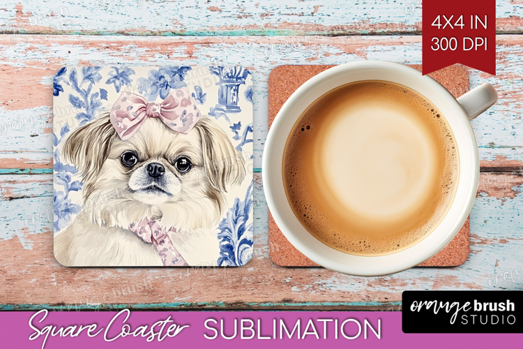 Pekingese Dog Coaster Sublimation Dog Square Coaster Dog Coaster Png Blue Toile Square Coaster Chinoiserie Square Coaster Blue Toile Coaster Sublimation Chinoiserie Coaster Sublimation Blue Toile Coaster Png Chinoiserie Coaster Png