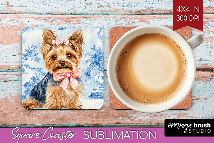 Yorkshire Terrier Dog Coaster Sublimation Dog Square Coaster Dog Coaster Png Blue Toile Square Coaster Chinoiserie Square Coaster Blue Toile Coaster Sublimation Chinoiserie Coaster Sublimation Blue Toile Coaster Png Chinoiserie Coaster Png