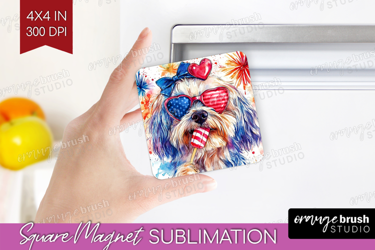 Havanese Dog Magnet Sublimation 4th Of July Square Magnet example image 1