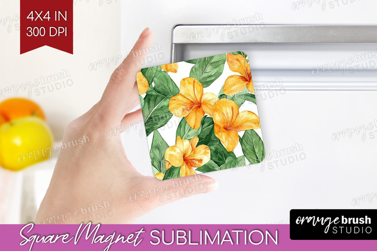 Tropical Flowers Magnet Sublimation - Floral Square Magnet example image 1