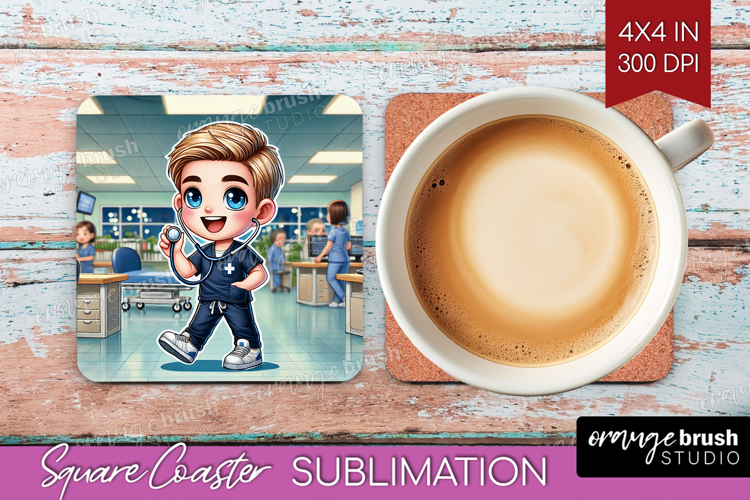Male Nurse Square Coaster - Medical Coaster PNG Sublimation
