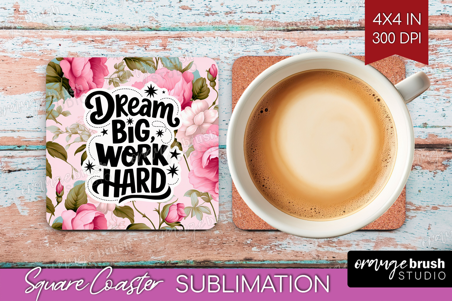Inspirational Quote Square Coaster - Floral Coaster PNG example image 1