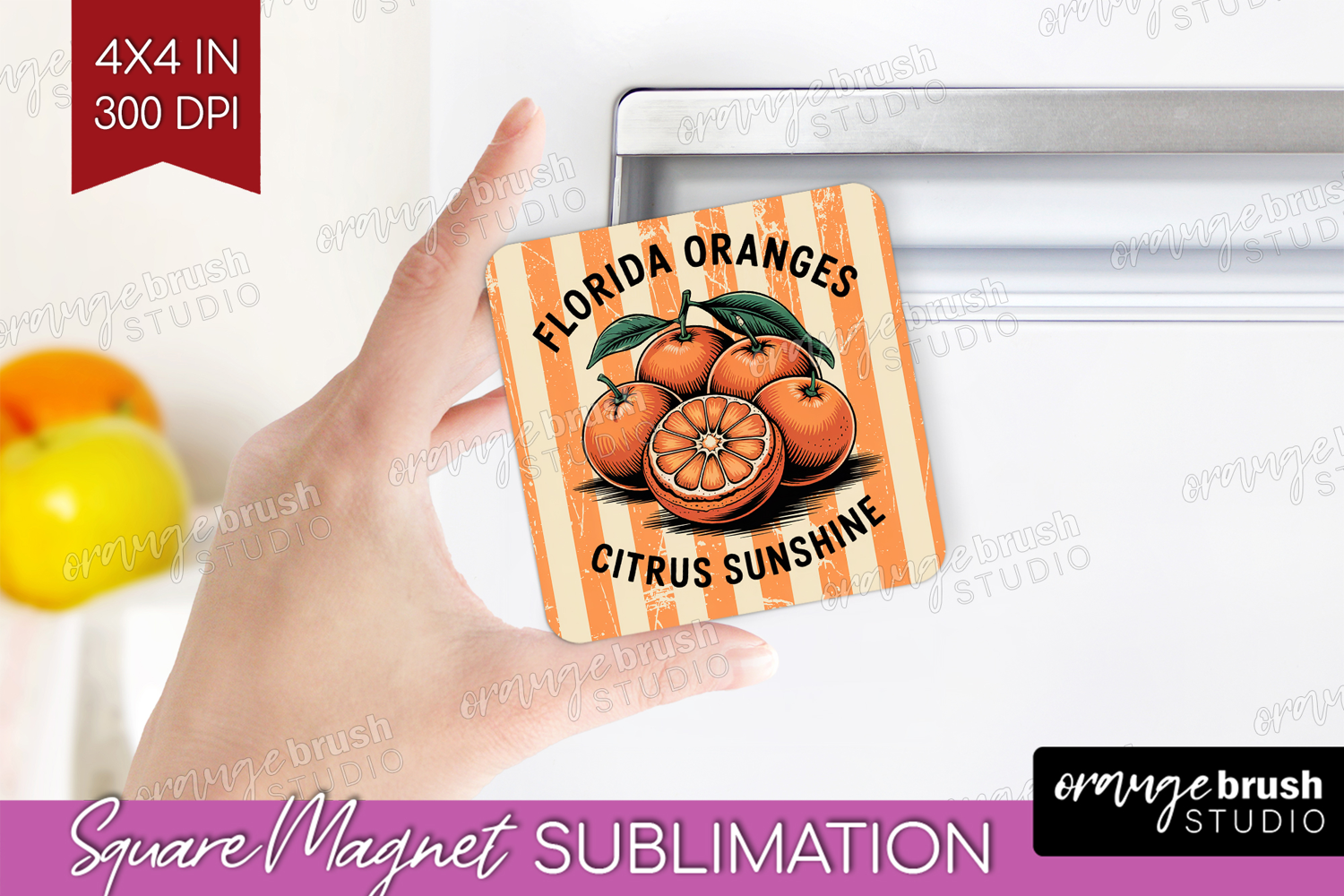 Orange Vintage Fruit Magnet Sublimation Summer Square Magnet example image 1