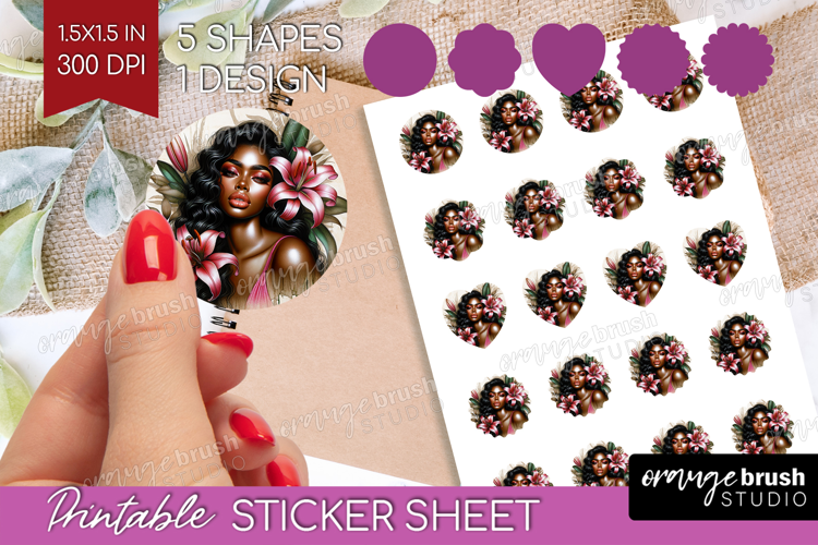 Floral Girl Round Sticker - Tropical Flowers Printable Sheet example image 1