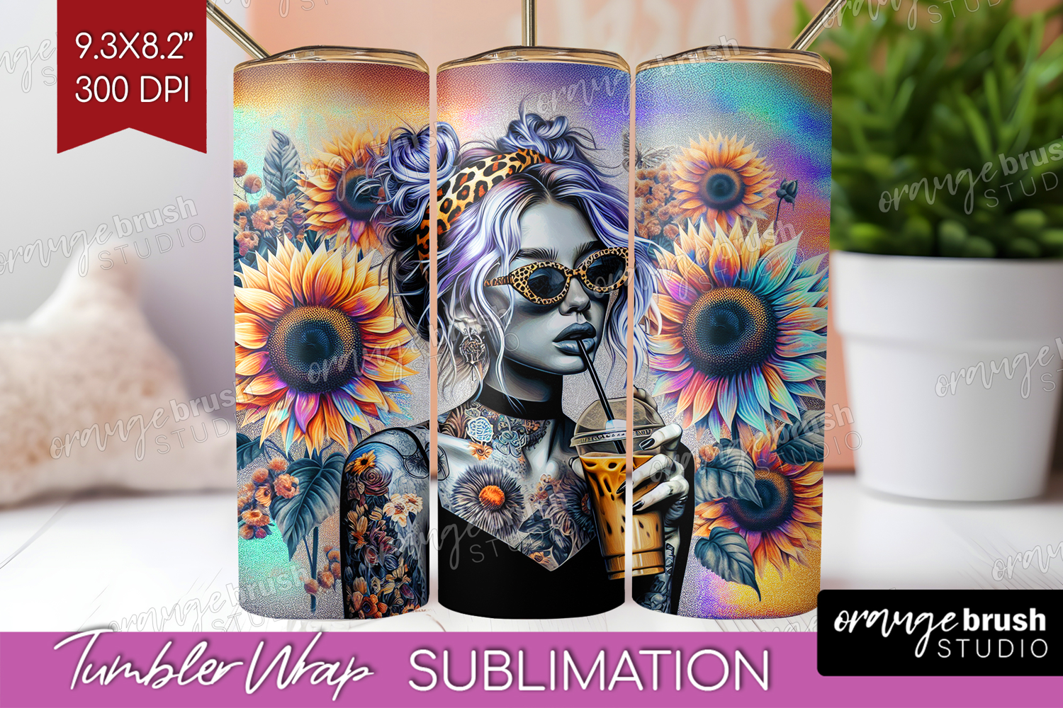 Floral Girl Tumbler Wrap - Coffee Lover Tumbler PNG