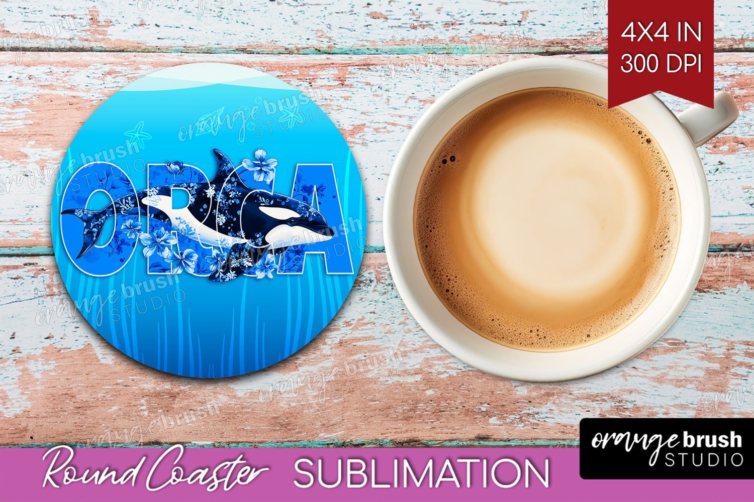 Similar Design Products to Orca Floral Round Coaster Sea Blue Coaster PNG Sublimation