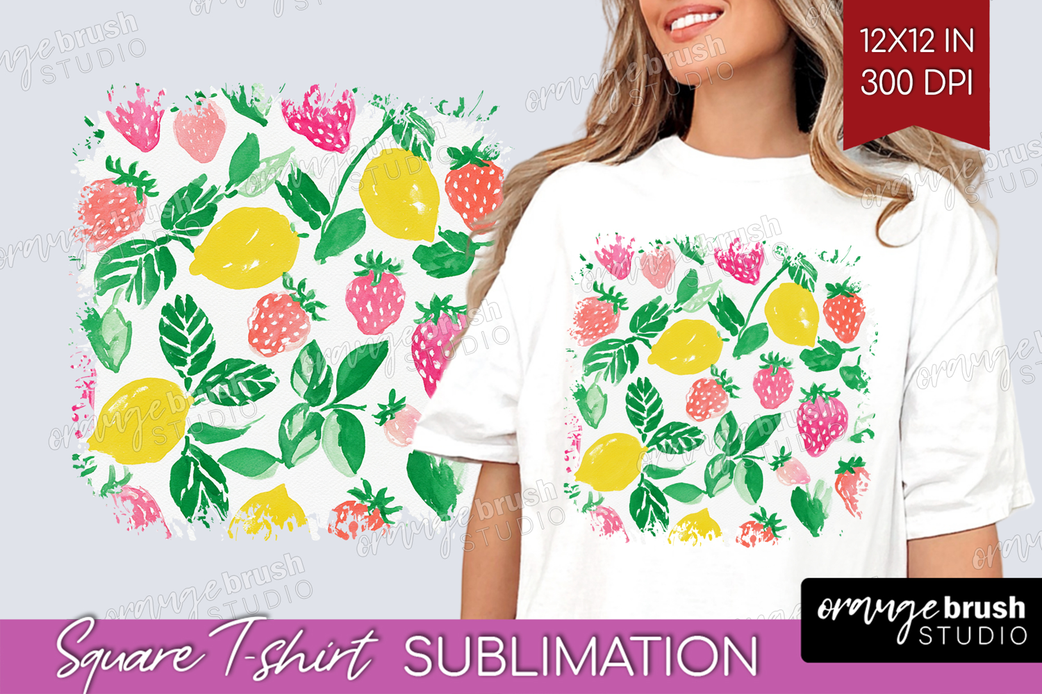 Abstract Fruit Square Tshirt Background - Tutti Frutti PNG example image 1