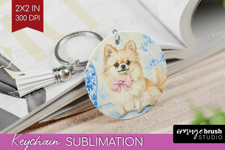 Spitz Dog Keychain PNG Floral Dog Keychain Sublimation