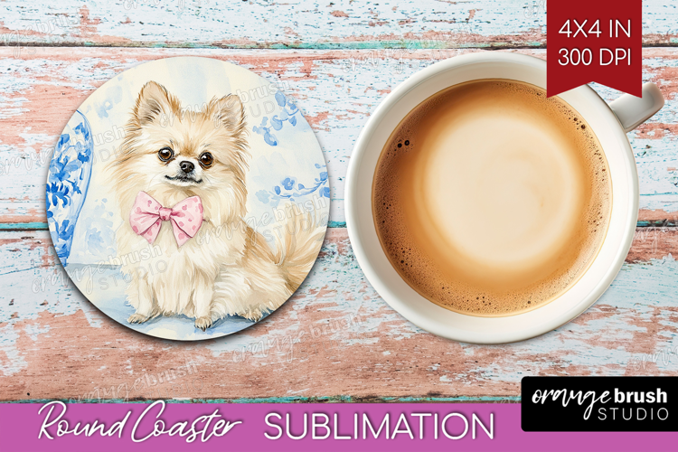 Spitz Dog Round Coaster Floral Dog Coaster PNG Sublimation