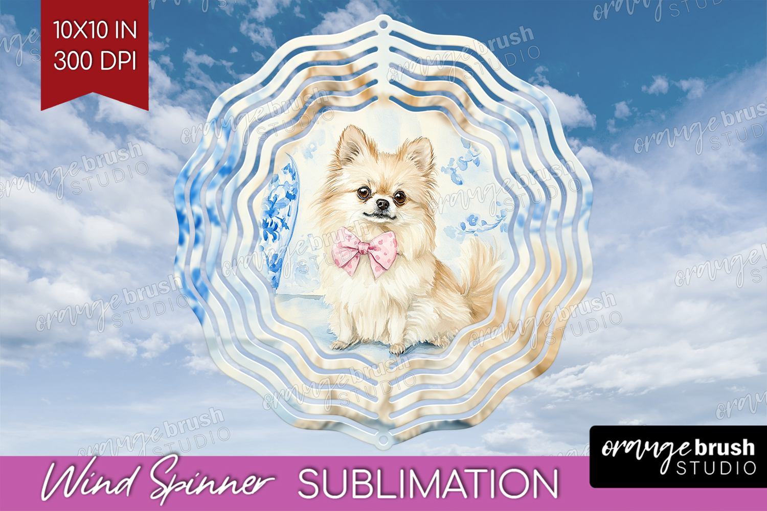 Spitz Dog Wind Spinner Sublimation PNG Floral Dog Round