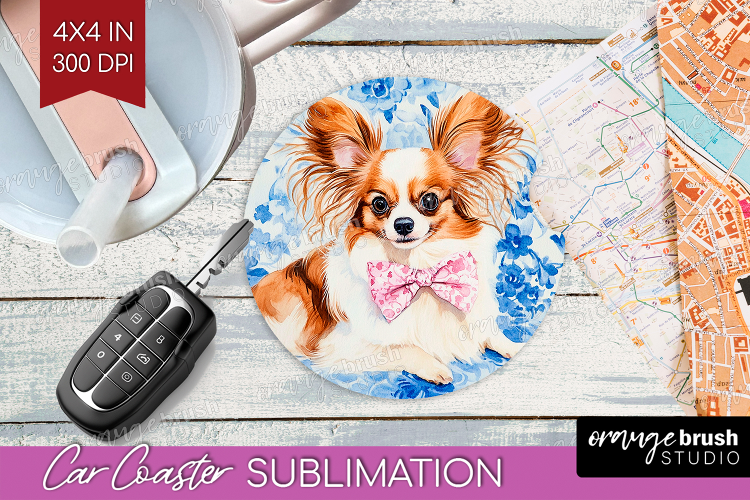 Papillon Dog Car Coaster Floral Dog Coaster PNG Sublimation