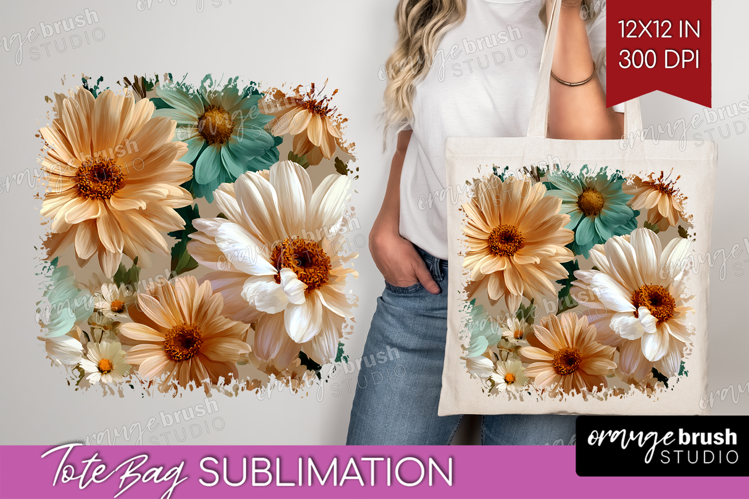 3D Flowers Tote Bag - Summer Tote Bag PNG Sublimation