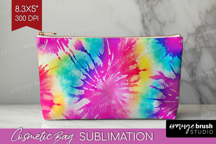 Rainbow Tie Dye Cosmetic Bag - Summer Makeup Bag PNG example image 1