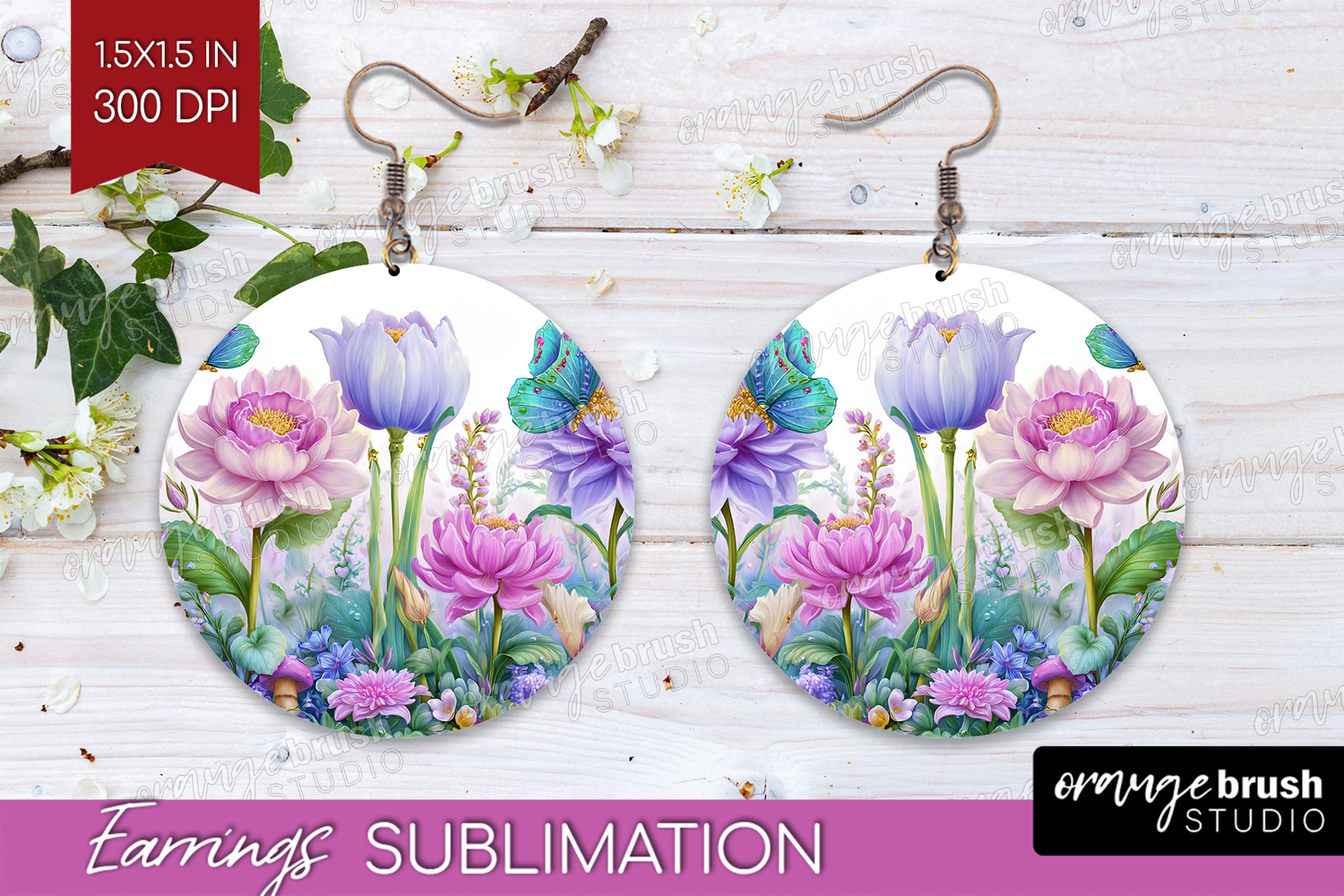 Magical Forest Round Earrings - Fantasy PNG Sublimation example image 1