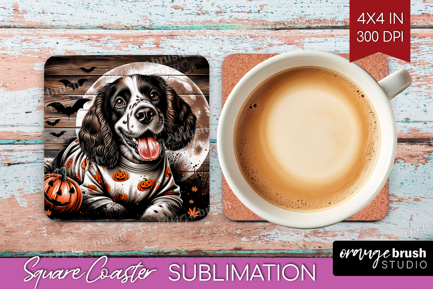 Spaniel Dog Square Coaster Halloween Coaster PNG Sublimation