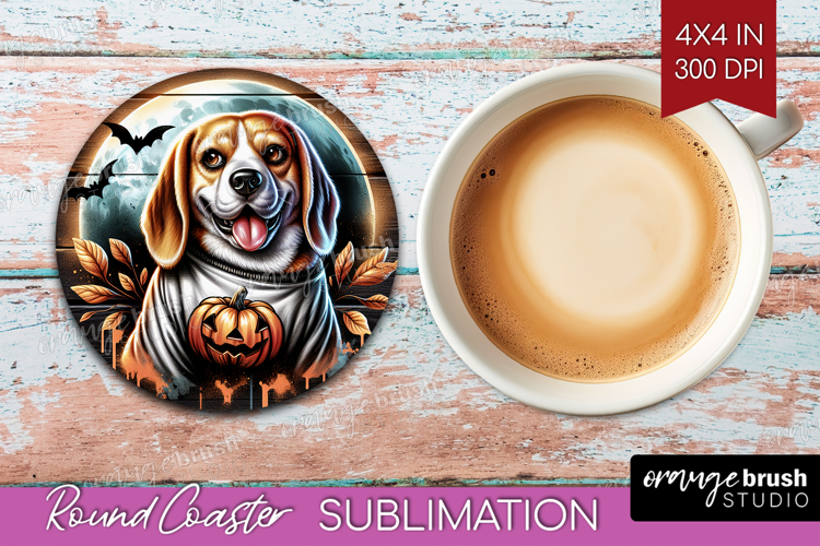 Beagle Dog Round Coaster Halloween Coaster PNG Sublimation example image 1