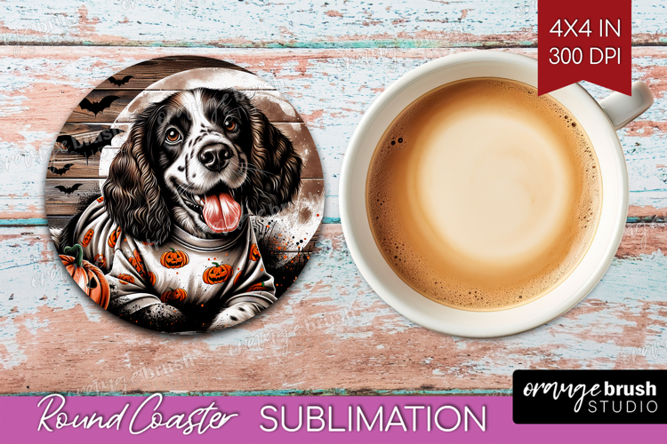 Spaniel Dog Round Coaster Halloween Coaster PNG Sublimation