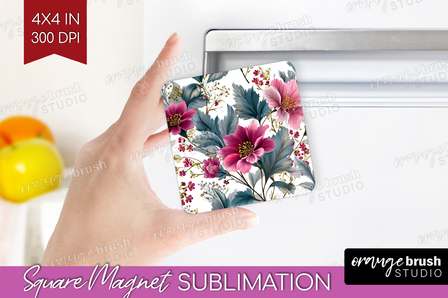 3D Flowers Magnet Sublimation - Summer Square Magnet PNG example image 1