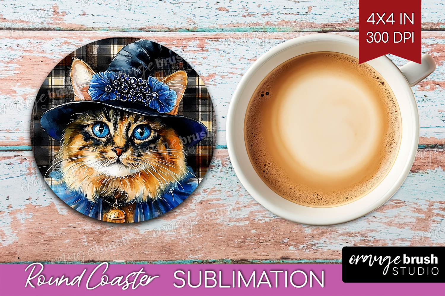 Halloween Cat Round Coaster - Witch Hat Coaster PNG