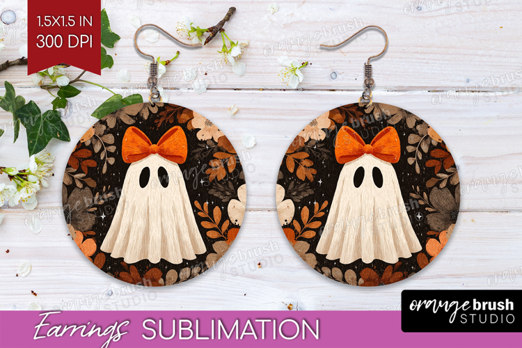 Cute Ghost Round Earrings - Spooky Halloween PNG Sublimation example image 1