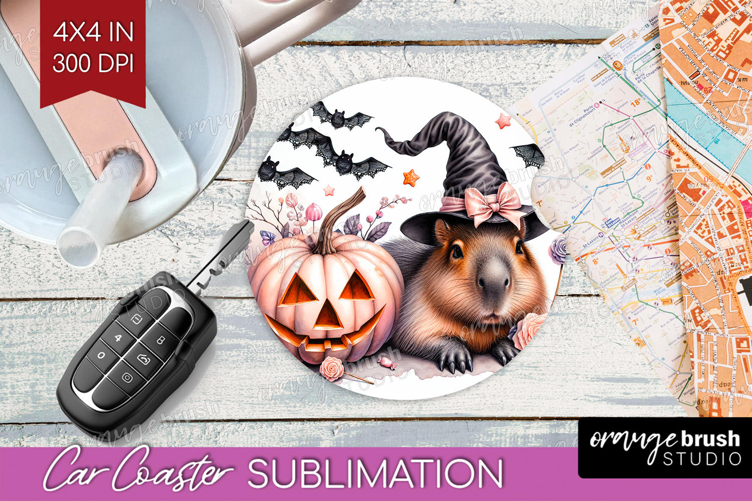 Capybara Halloween Car Coaster Coquette Coaster PNG