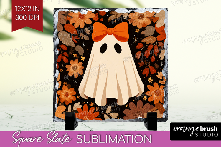 Cute Ghost Slate PNG - Spooky Halloween Square Slate example image 1