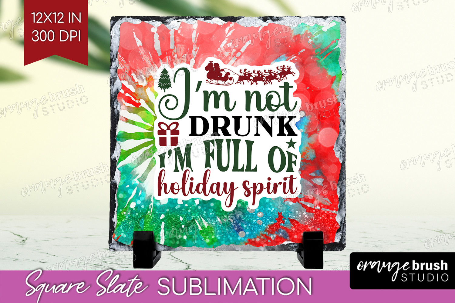 Sarcastic Christmas Quote Slate PNG - Tie Dye Square Slate example image 1