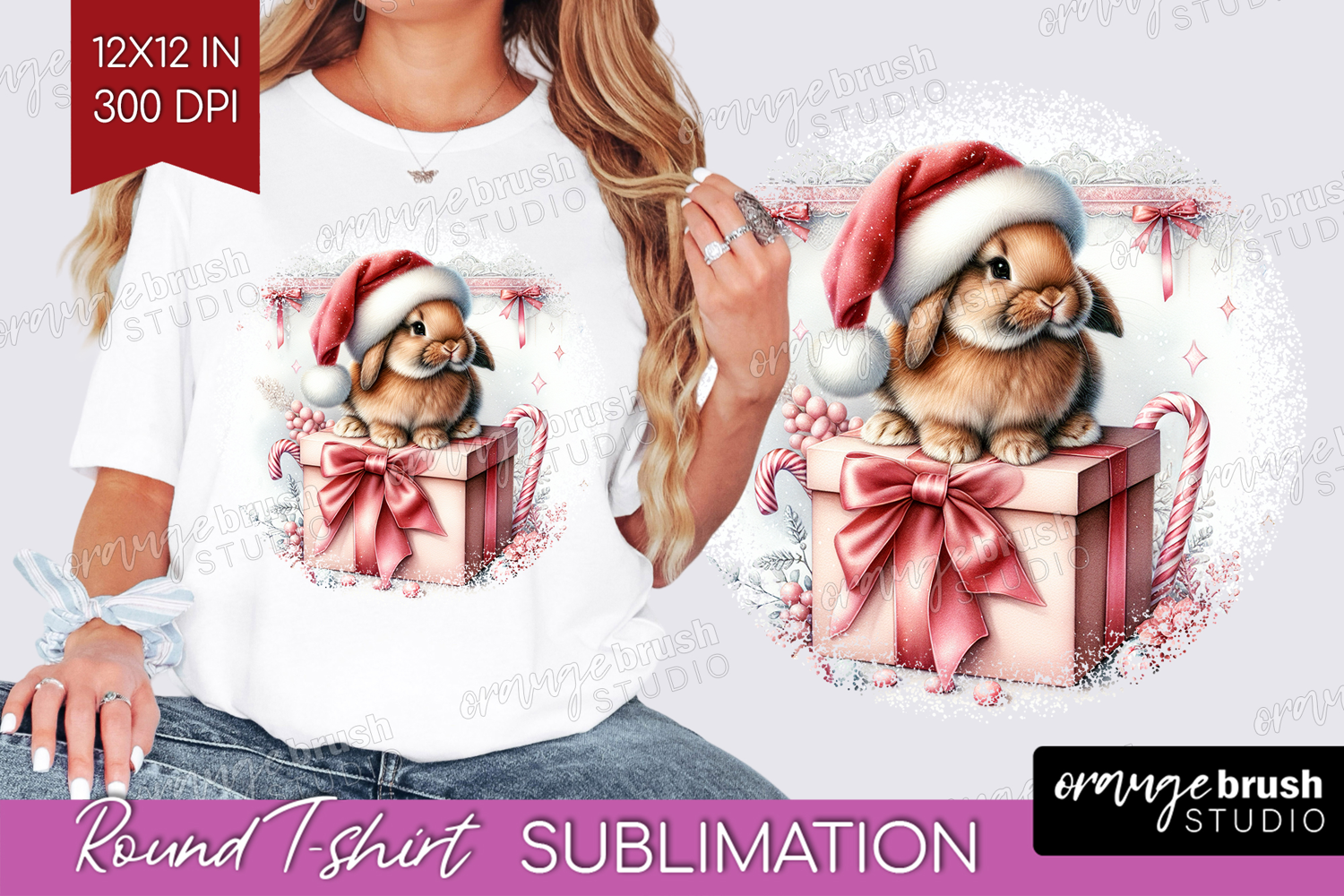 Bunny Pastel Christmas Round Tshirt Background Coquette Xmas example image 1