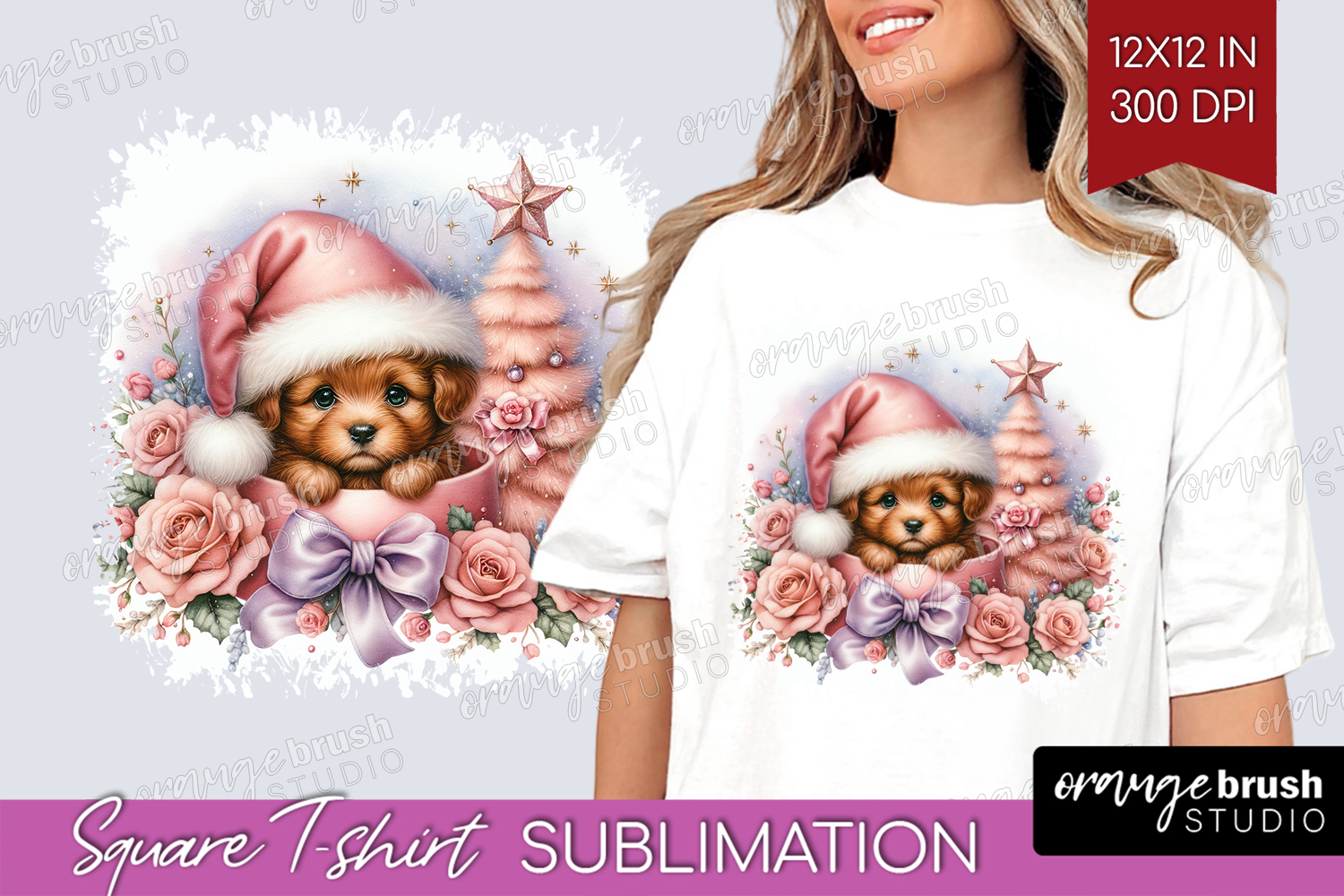 Puppy Pastel Christmas Square Tshirt Background Coquette example image 1