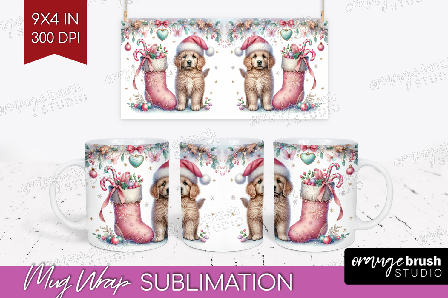 Puppy Pastel Christmas Mug Wrap Coquette Xmas Mug PNG example image 1
