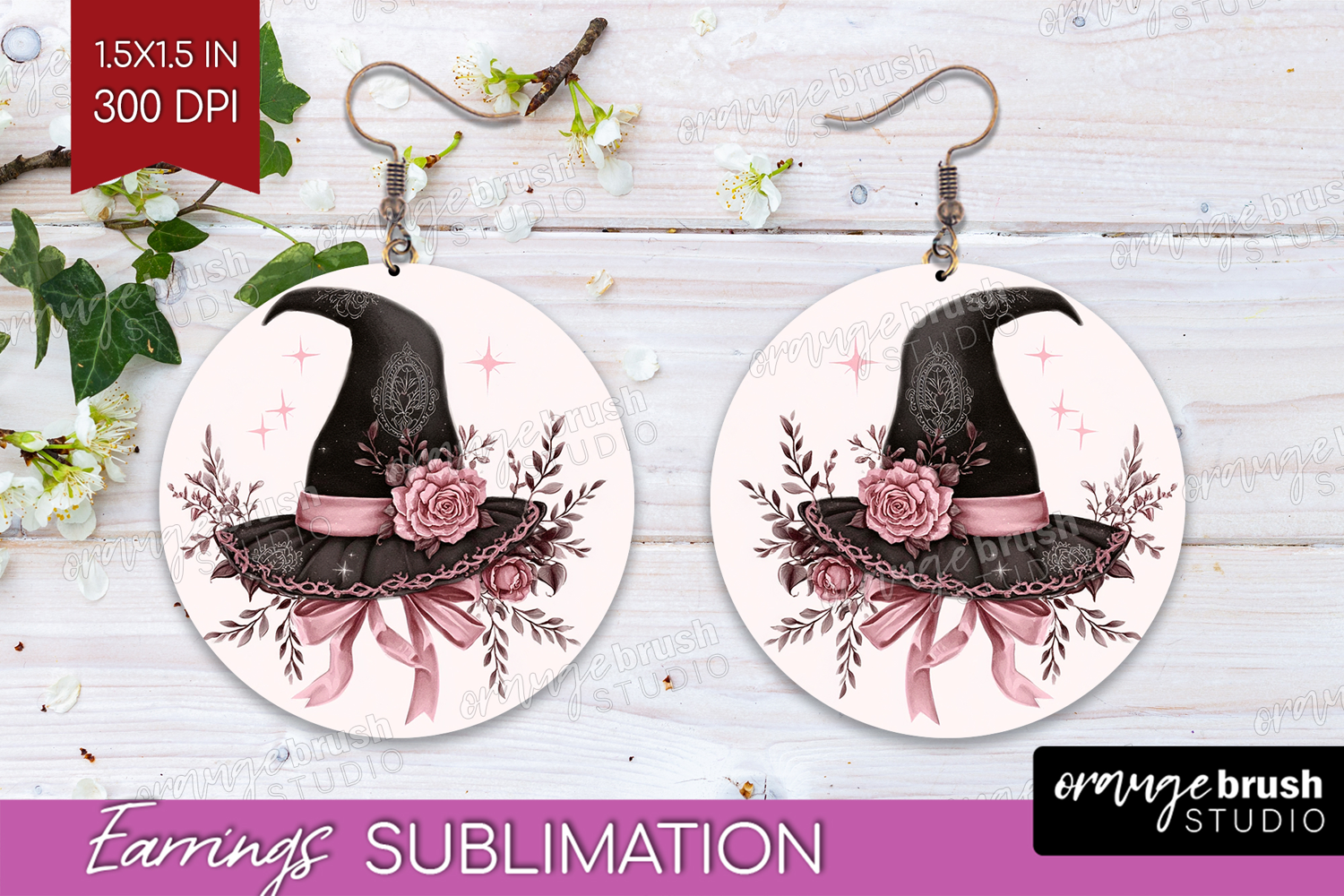 Similar Design Products to Witch Hat Cute Round Earrings Pink Halloween PNG Sublimation