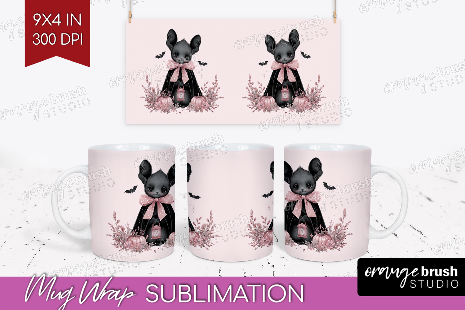 Cute Bat Cute Mug Wrap Pink Halloween Mug PNG Sublimation example image 1
